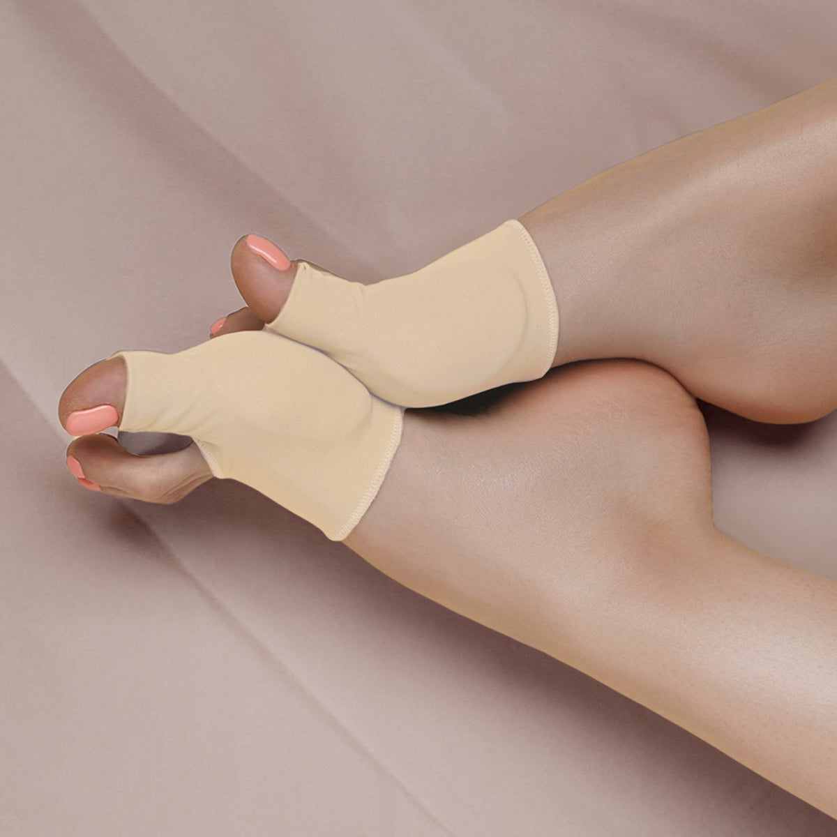 The sleeve keeps the gel cushion over bunions to alleviate pressure and friction.