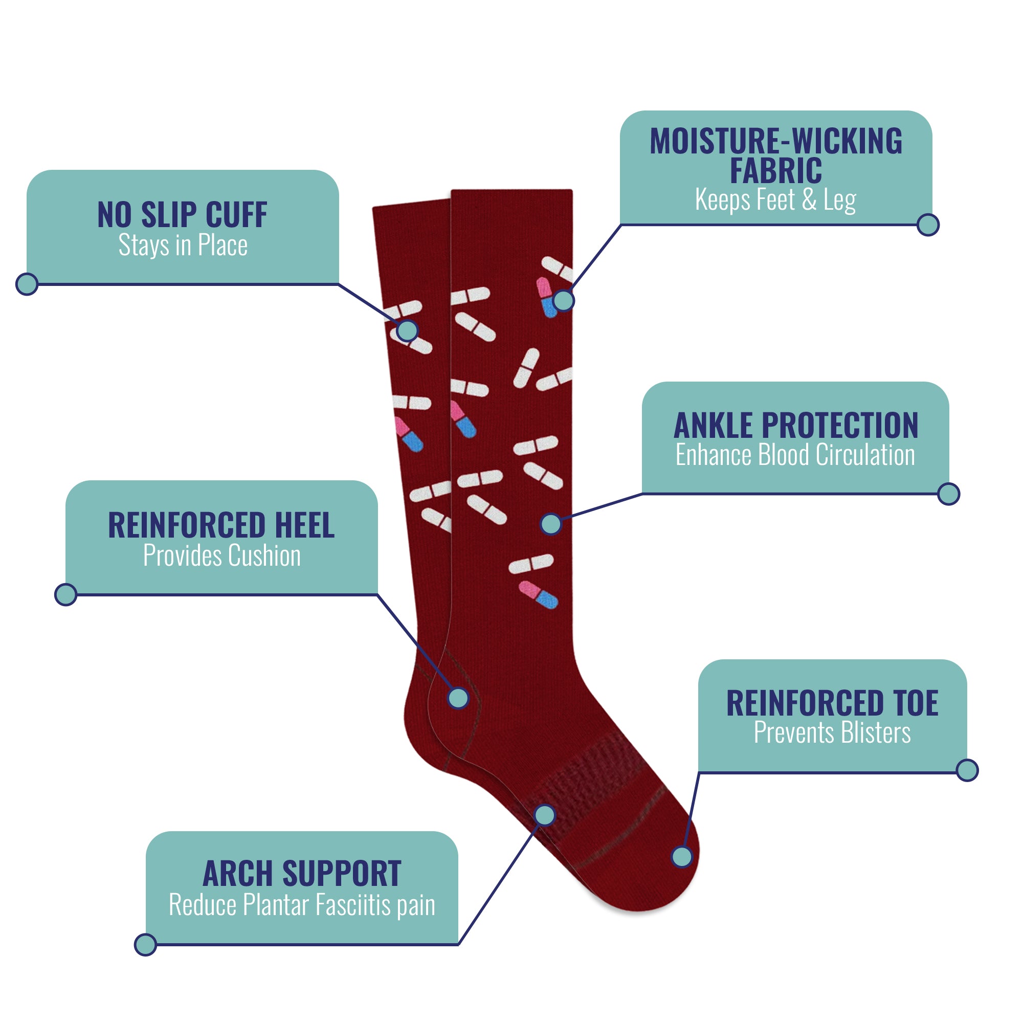 Made of moisture-wicking materials, these knee-high compression socks help improve blood circulation while alleviating swelling