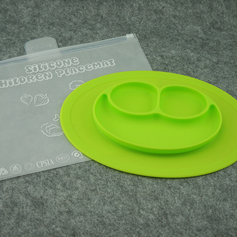 Elevate your toddler's mealtime experience with this first-of-its-kind Silicone Feeding Placemat & 3-Section Plate Set — the set you need because self-feeding is so easy, fun, and great for the development of your little one's fine motor skills. With three portioned sections (2oz, 2oz, and 4oz) shaped like happy eyes and a smile, you can rest easy knowing the meals you're providing are well-balanced and vibey!