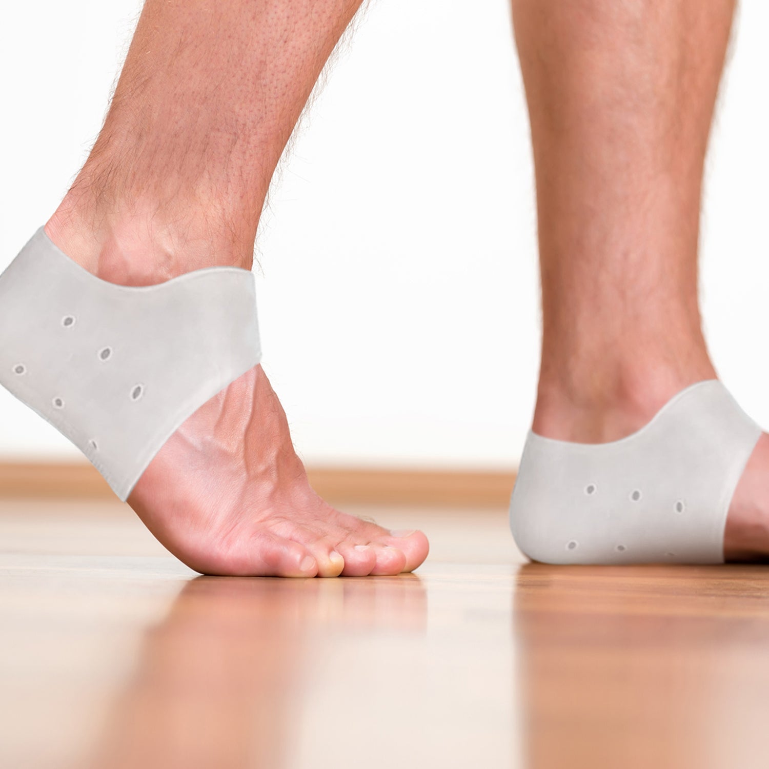 This pair of soft, stretchable gel heel and ankle sleeve helps cope with the symptoms of plantar fasciitis, fallen arches, and heel spurs. It can support the heel and ankle with or without shoes. It can also help speed up the recovery process for a number of foot conditions